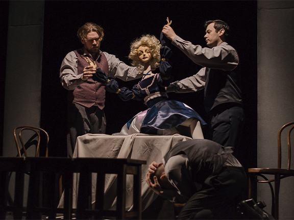 Кукольный ряд представлен перчаточными персонажами, также на сцене действует шарнирная «петербургская кукла, актёрка» – «Коломбина десятых годов», которую Ахматова называет одним из своих двойников.