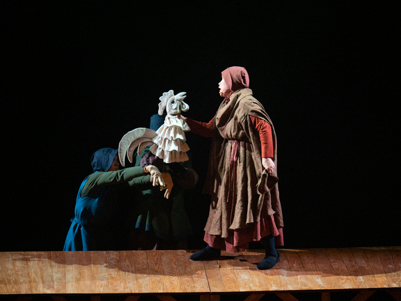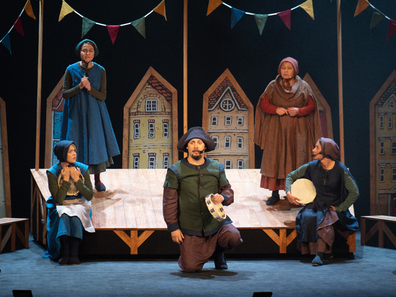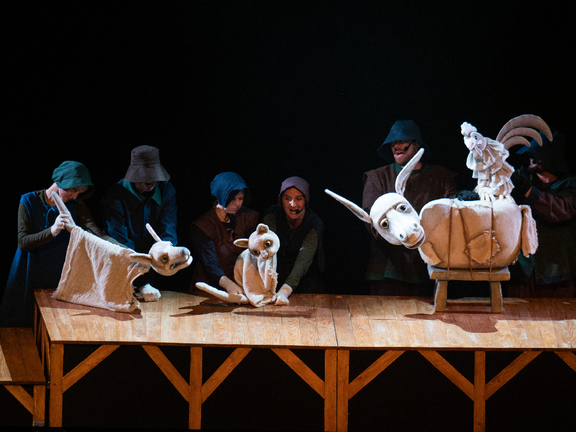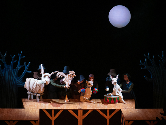 А сказка, как и наш спектакль, воспевает подвиг храбрых зверей, защитивших город Бремен от злобных разбойников.