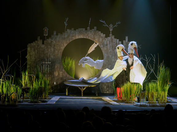 История загадочной дочери болотного царя будет рождаться прямо на глазах у зрителей из обрывков звуков, из-под пера самого автора, который будет фигурировать в спектакле в качестве действующего лица. Его помощниками-повествователями станут аисты, оказавшиеся не просто свидетелями удивительных событий, но и их непосредственными участниками.