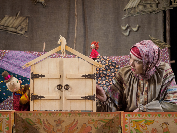 В спектакле использованы разные системы кукол: мимирующие, тростевые, куклы на «потычках».