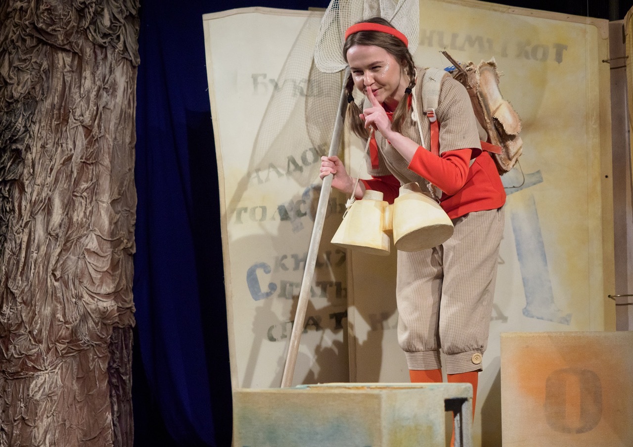 Постановка также знакомит малышей с буквами, книгами и приглашает в волшебный мир чтения. В спектакле звучит веселая музыка, буквы ловятся сачком, и все это происходит под прекрасную поэзию Корнея Чуковского: «Словно крылья райской птицы, раскрываются страницы в мир неведомый и яркий. Нет чудеснее подарка!».
