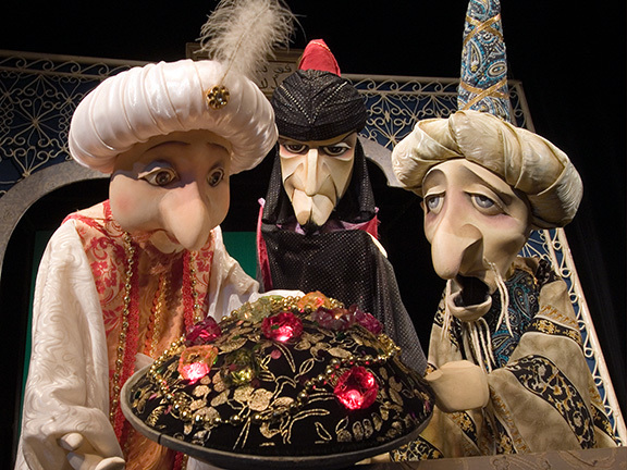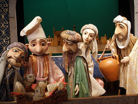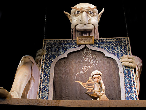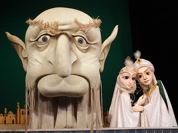 Классический сюжет из сказок «Тысячи и одной ночи» в постановке на ширме с настоящими «кукольными» эффектами.